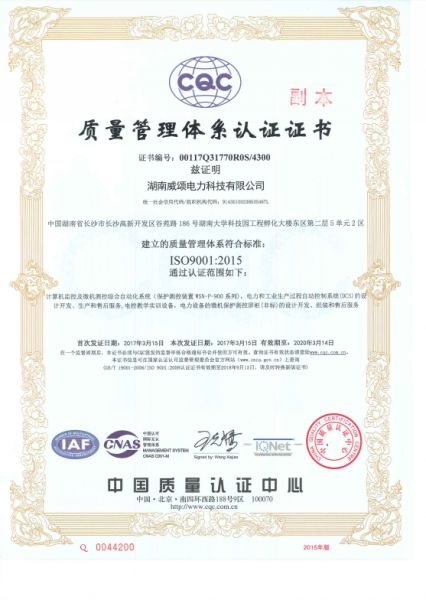 质量管理体系认证证书