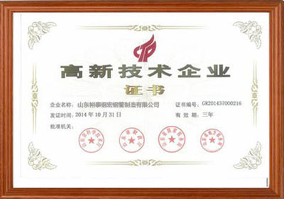 山东裕泰钢宏钢管制造有限公司是目前山东地区专业从事生产加工热镀锌钢管,热镀锌大棚钢管,镀锌方管,直缝钢管,方管,工角槽,镀锌工角槽,钢板,板带,镀锌板等等。 公司拥有先进的热轧生产机组、棍式挤压冷弯设备,生产用模具,冷变一次成型等主要生产设备。公司通过不断对生产工艺、检测设备进行技术改造,加强了对产品质量的控制。并且在“产品质量就是企业生命”的经营理念指导下,配备了各种科学先进的检测设施:如在线超声波自动探伤仪、X射线实时成像系统、在线超声波自动探伤仪、静水压试验机、万能材料试验机、碳硫分析化验等检测化验设备,并配有专业的技术操作人员。 公司销售产品广泛应用于农业大棚、输送煤气、暖气、建筑、机械、煤矿、工程建筑、幕墙门窗装饰、钢结构、护栏、化工、石油、铁道车辆、汽车、公路、桥...... [ 查看详情 ]